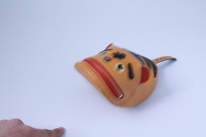 顔を押すと体がユラユラとゆれる遊べるポーチになっています。