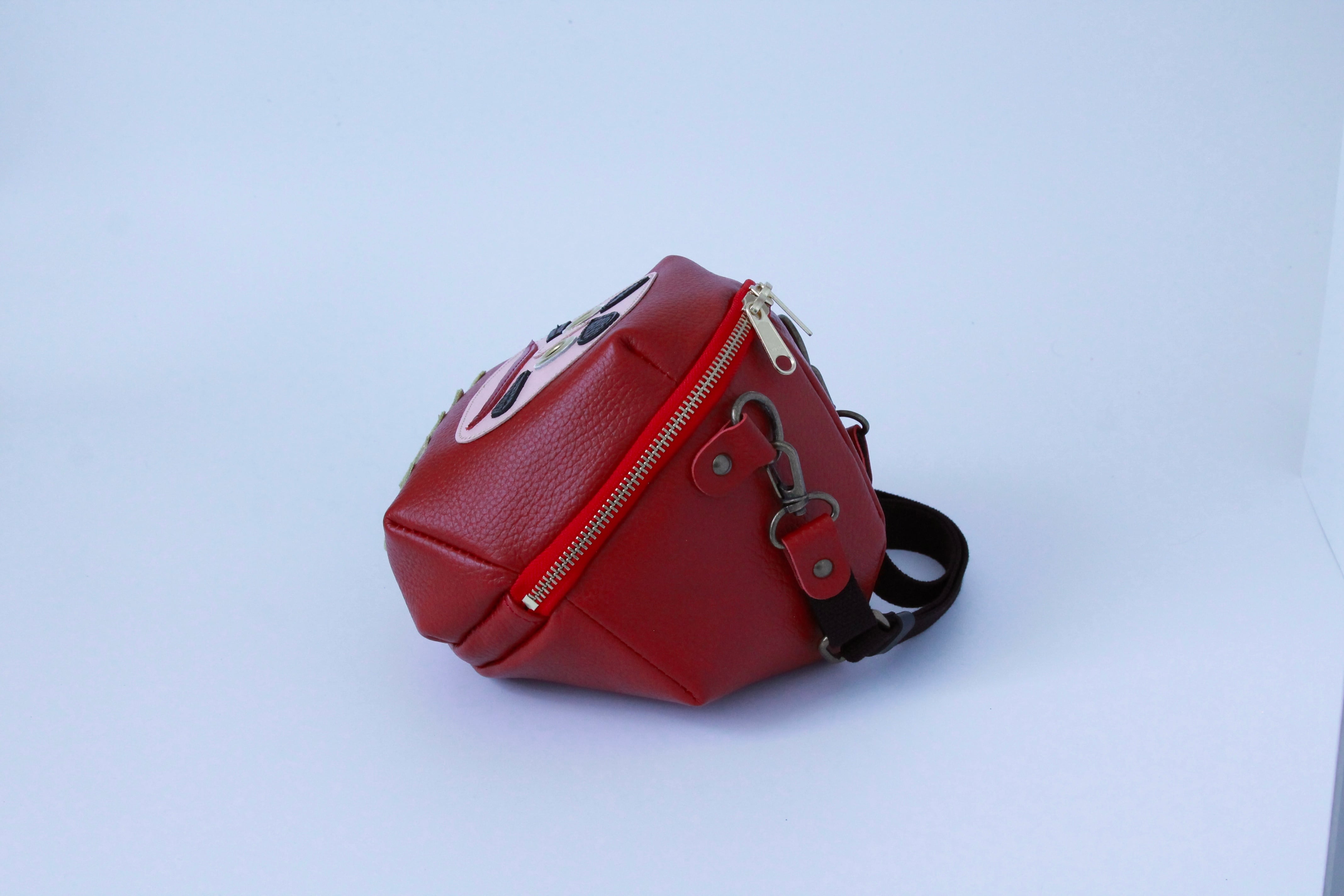 顔の模様から全体まですべて素材は、全て兵庫県のタンナーさんでなめしていただいた国産牛革で作りました。
