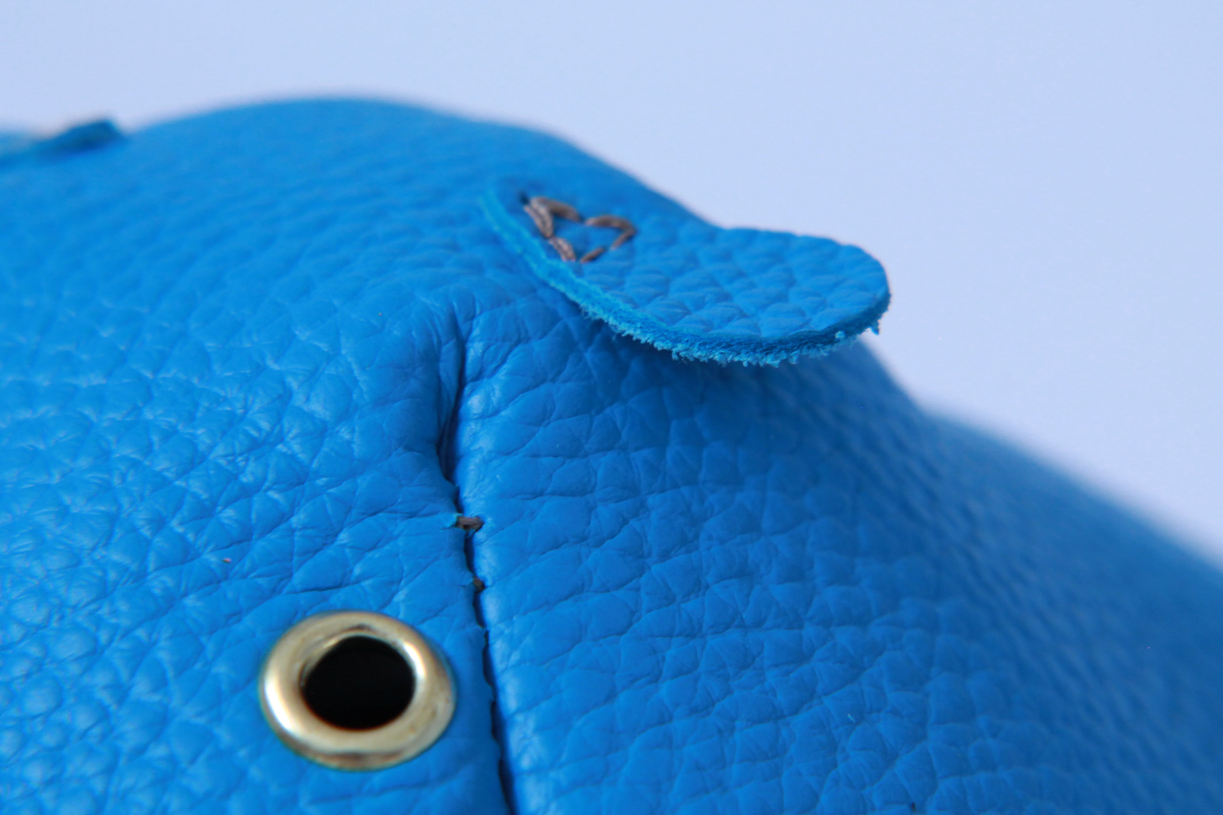 目はハトメで表現したので、きれいな丸い目に仕上がり、穴が空いているので、コードなどを通して使うこともできます。